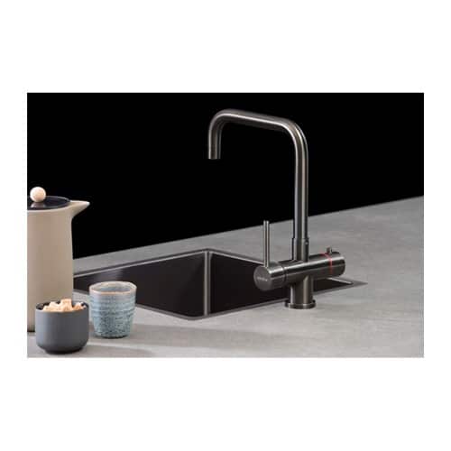 Als u van robuust, strak en modern houdt, dan is de Selsiuz kokend water kraan Titanium-Single Boiler Haaks Gun-Metal een kraan voor u. Deze 3-in-1 kraan geeft u rechtstreeks kokend water, zonder wachttijden. De stoere haakse uitloop en het zwarte design zullen de aandacht zeker trekken. Met deze haakse Gun-Metal kokend water kraan haalt u een prachtig ontwerp naar uw designkeuken.