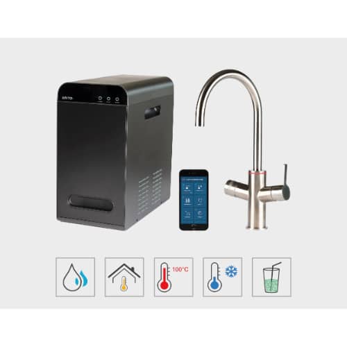 De kraan is uitgerust met meerdere veiligheidsvoorzieningen, waaronder een kinderbeveiliging, oververhittingszekering en een veiligheidsklep. De ingebouwde LED-lichtring geeft een visuele indicatie wanneer kokend water wordt getapt, zodat u altijd weet wanneer u extra voorzichtig moet zijn.