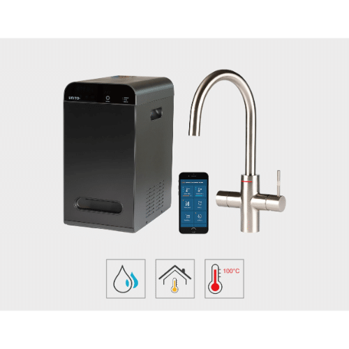 Het LAVA 4.4L systeem levert 100°C kokend water en gefilterd drinkwater. Dit reservoir, met zijn ruime 4.4-liter capaciteit, is extreem energiezuinig en eenvoudig te bedienen via een mobiele applicatie. De tank is compact en gemakkelijk te installeren, zelfs als u alleen een koud-water leiding heeft (mengventiel optioneel beschikbaar).