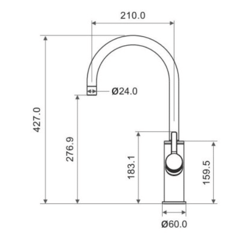 Standaard meegeleverd bij de UNITO LAVA G2 8L kokendwaterkraan Universe C Goud
